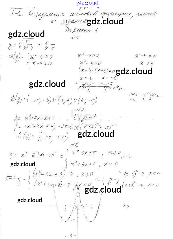 СР-1. Определение числовой функции, способы ее задания Ответы к Главе 1. Числовые функции по Алгебре 10 класс Самостоятельные работы Александрова Базовый уровень Мнемозина