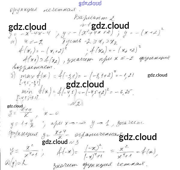 СР-2. Свойства функций Ответы к Главе 1. Числовые функции по Алгебре 10 класс Самостоятельные работы Александрова Базовый уровень Мнемозина