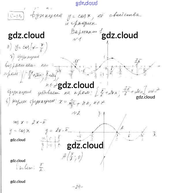 СР-13. Функция y=cos. x и ее график Ответы к Главе 2. Тригонометрические функции по Алгебре 10 класс Самостоятельные работы Александрова Базовый уровень Мнемозина