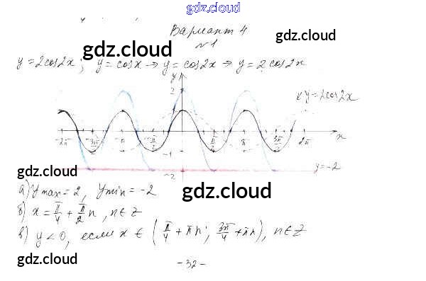 СР-16. Преобразование графиков тригонометрических функций Ответы к Главе 2. Тригонометрические функции по Алгебре 10 класс Самостоятельные работы Александрова Базовый уровень Мнемозина