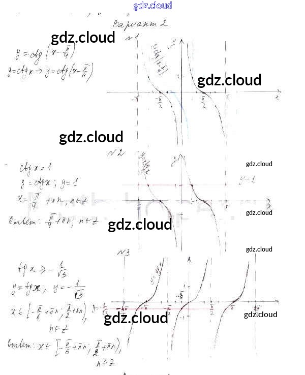 СР-17. Функции y=tg, x y=ctg x, их свойства и графики Ответы к Главе 2. Тригонометрические функции по Алгебре 10 класс Самостоятельные работы Александрова Базовый уровень Мнемозина