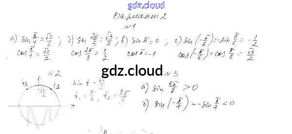 СР-7. Синус и косинус Ответы к Главе 2. Тригонометрические функции по Алгебре 10 класс Самостоятельные работы Александрова Базовый уровень Мнемозина