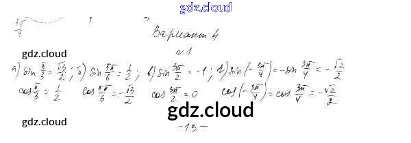 СР-7. Синус и косинус Ответы к Главе 2. Тригонометрические функции по Алгебре 10 класс Самостоятельные работы Александрова Базовый уровень Мнемозина