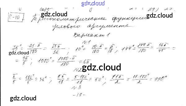 СР-10. Тригонометрические функции углового аргумента Ответы к Главе 2. Тригонометрические функции по Алгебре 10 класс Самостоятельные работы Александрова Базовый уровень Мнемозина