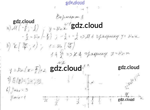 СР-12. Функция y=sin. x и ее график Ответы к Главе 2. Тригонометрические функции по Алгебре 10 класс Самостоятельные работы Александрова Базовый уровень Мнемозина
