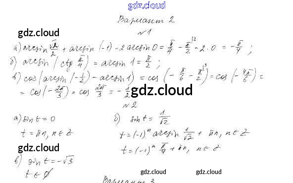 СР-19. Арккосинус и решение уравнения sin t=a Ответы к Главе 3. Тригонометрические уравнения по Алгебре 10 класс Самостоятельные работы Александрова Базовый уровень Мнемозина