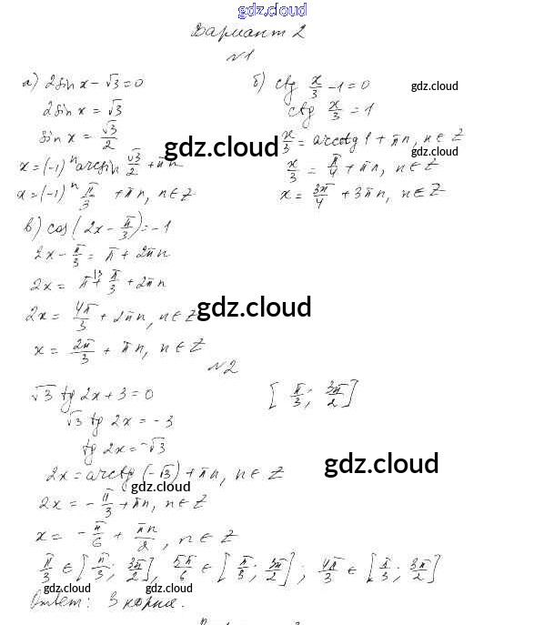 СР-21. Тригонометрические уравнения Ответы к Главе 3. Тригонометрические уравнения по Алгебре 10 класс Самостоятельные работы Александрова Базовый уровень Мнемозина