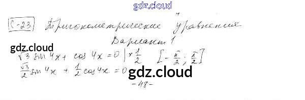 СР-23. Тригонометрические уравнения Ответы к Главе 3. Тригонометрические уравнения по Алгебре 10 класс Самостоятельные работы Александрова Базовый уровень Мнемозина