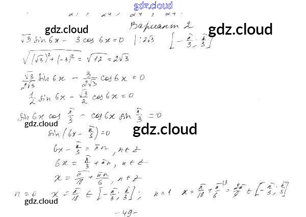 СР-23. Тригонометрические уравнения Ответы к Главе 3. Тригонометрические уравнения по Алгебре 10 класс Самостоятельные работы Александрова Базовый уровень Мнемозина