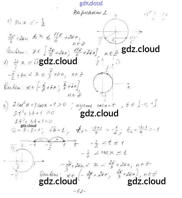 СР-24. Тригонометрические неравенства Ответы к Главе 3. Тригонометрические уравнения по Алгебре 10 класс Самостоятельные работы Александрова Базовый уровень Мнемозина