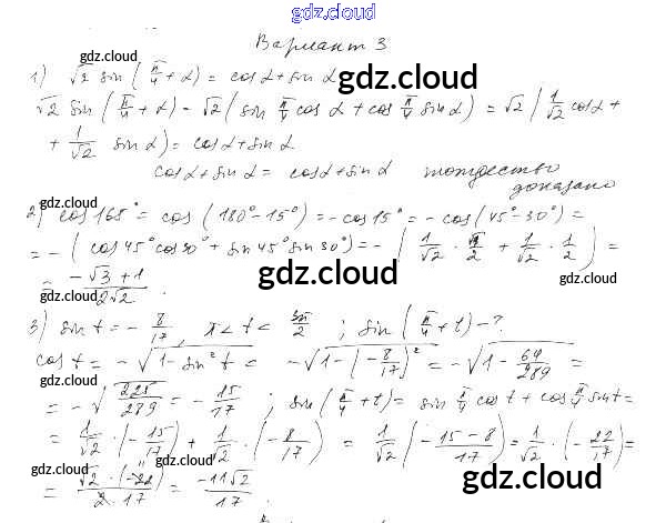 СР-25. Синус и косинус суммы и разности аргументов Ответы к Главе 4. Преобразование тригонометрических выражений по Алгебре 10 класс Самостоятельные работы Александрова Базовый уровень Мнемозина