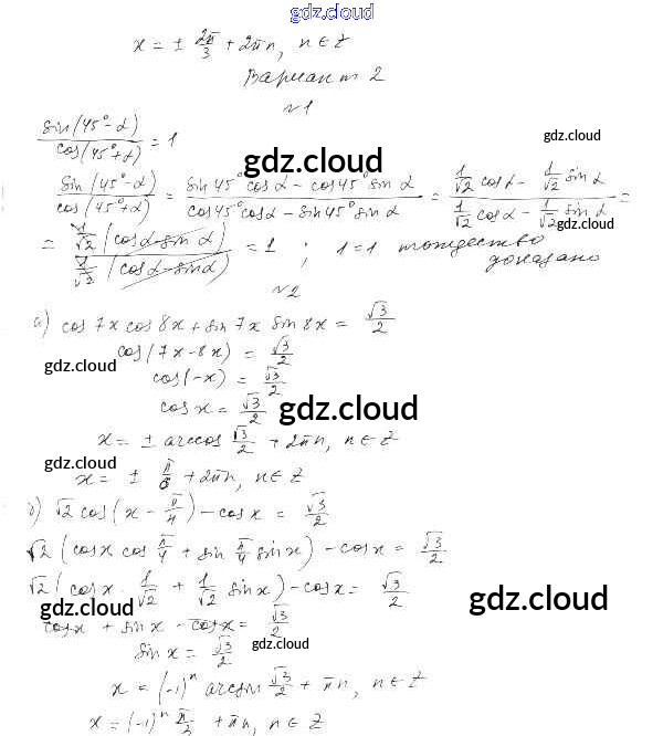 СР-26. Синус и косинус суммы и разности аргументов Ответы к Главе 4. Преобразование тригонометрических выражений по Алгебре 10 класс Самостоятельные работы Александрова Базовый уровень Мнемозина