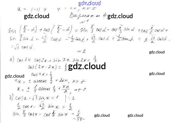 СР-26. Синус и косинус суммы и разности аргументов Ответы к Главе 4. Преобразование тригонометрических выражений по Алгебре 10 класс Самостоятельные работы Александрова Базовый уровень Мнемозина