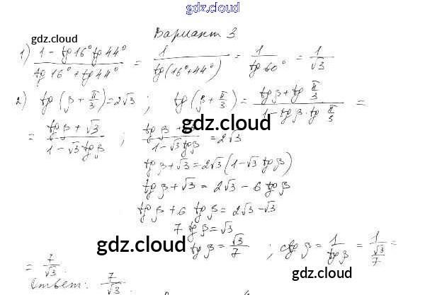 СР-27. Тангенс суммы и разности аргументов Ответы к Главе 4. Преобразование тригонометрических выражений по Алгебре 10 класс Самостоятельные работы Александрова Базовый уровень Мнемозина