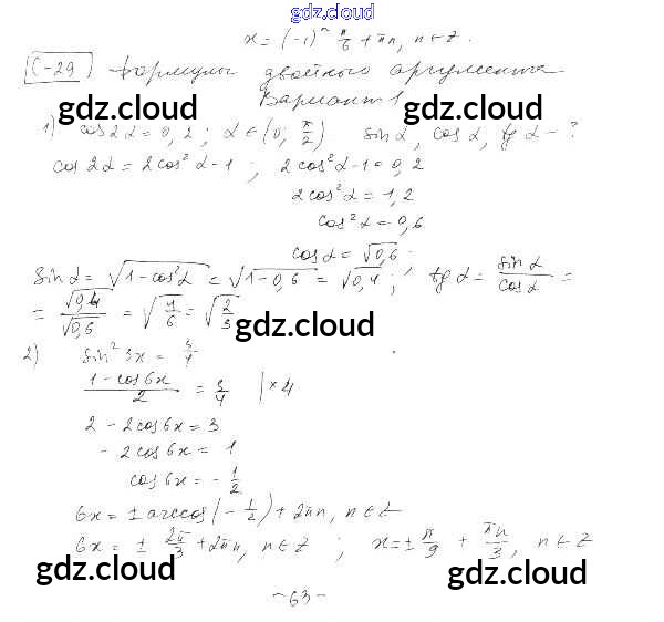 СР-29. Формулы двойного аргумента Ответы к Главе 4. Преобразование тригонометрических выражений по Алгебре 10 класс Самостоятельные работы Александрова Базовый уровень Мнемозина