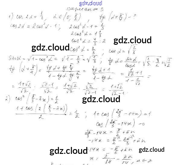 Ответ на задание вариант 3 Самостоятельные работы Алгебра за 10 (десятый) класс Александрова Базовый уровень 2017