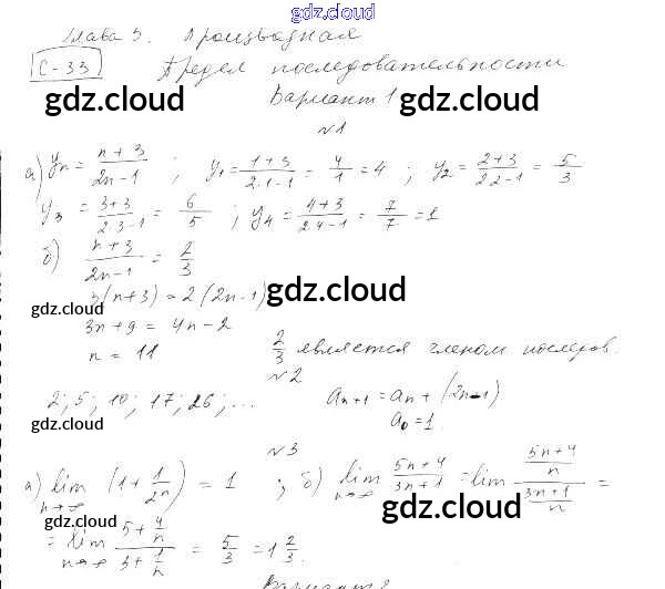 СР-33. Предел последовательности Ответы к Главе 5. Производная по Алгебре 10 класс Самостоятельные работы Александрова Базовый уровень Мнемозина