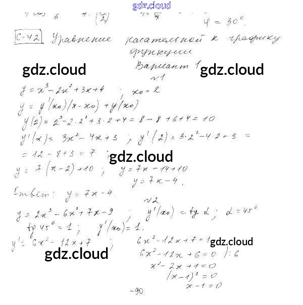 СР-42. Уравнение касательной к графику функции Ответы к Главе 5. Производная по Алгебре 10 класс Самостоятельные работы Александрова Базовый уровень Мнемозина