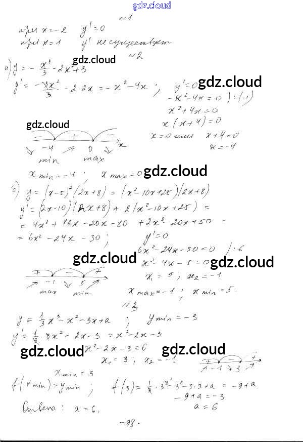 СР-44. Применение производной для исследования функций на экстремум Ответы к Главе 5. Производная по Алгебре 10 класс Самостоятельные работы Александрова Базовый уровень Мнемозина
