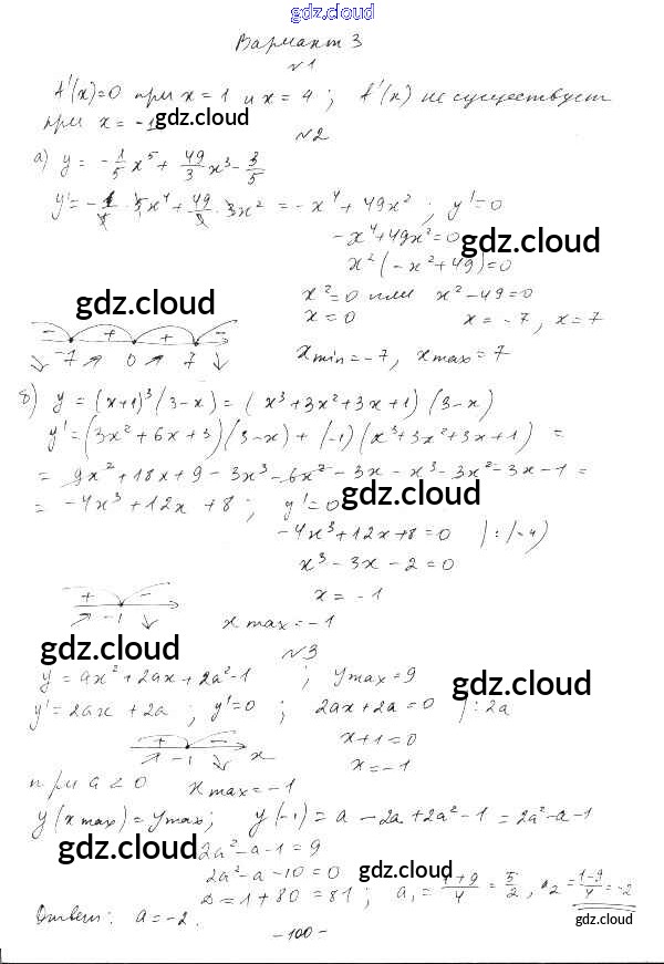СР-44. Применение производной для исследования функций на экстремум Ответы к Главе 5. Производная по Алгебре 10 класс Самостоятельные работы Александрова Базовый уровень Мнемозина