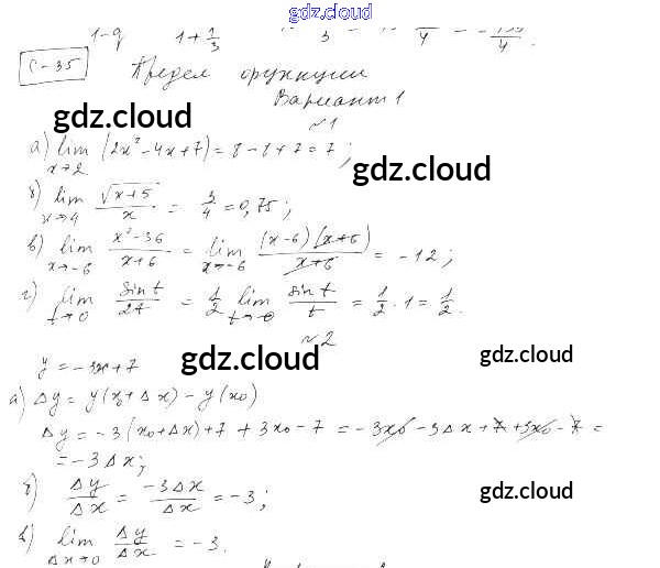 СР-35. Предел функции Ответы к Главе 5. Производная по Алгебре 10 класс Самостоятельные работы Александрова Базовый уровень Мнемозина