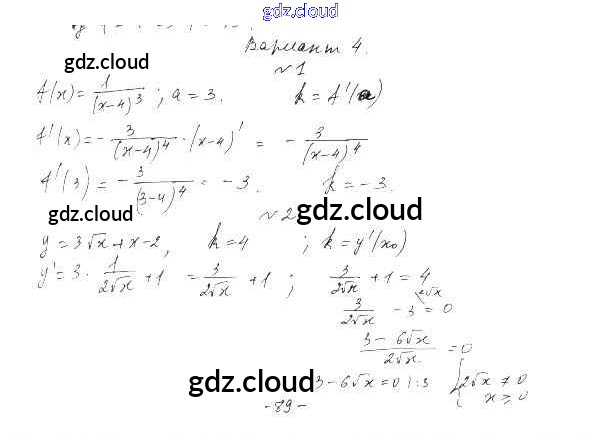 СР-41. Уравнение касательной к графику функции Ответы к Главе 5. Производная по Алгебре 10 класс Самостоятельные работы Александрова Базовый уровень Мнемозина