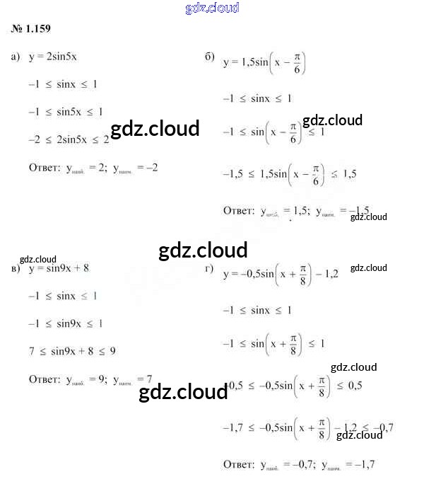 Ответ на задание 1.159 Учебник Алгебра за 10 (десятый) класс Арефьева, Пирютко 2019 онлайн и без номера телефона.