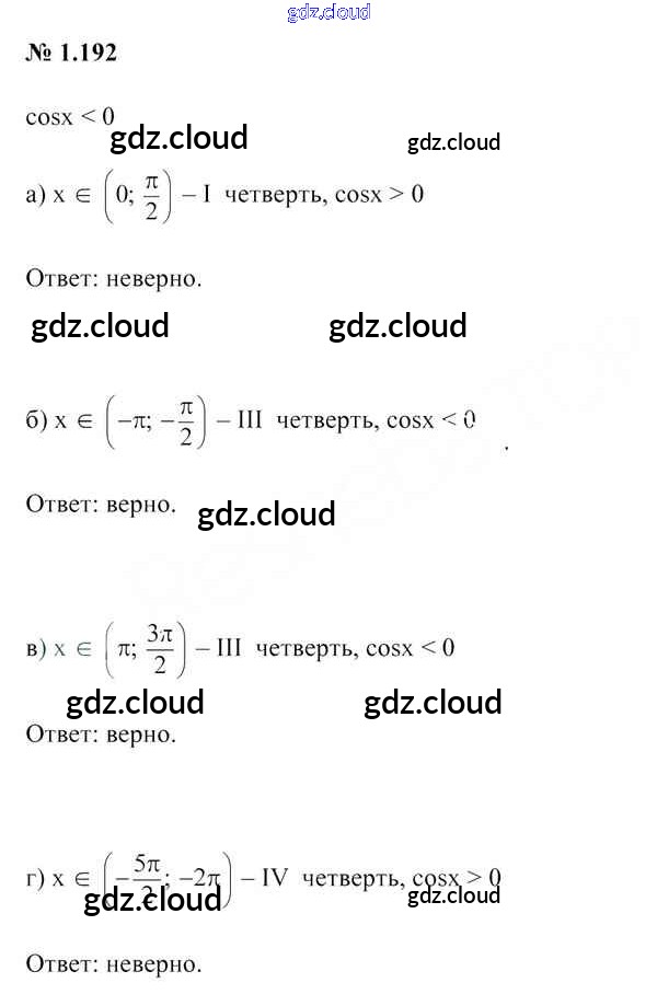 Ответ на задание 1.192 Учебник Алгебра за 10 (десятый) класс Арефьева, Пирютко 2019 онлайн и без номера телефона.