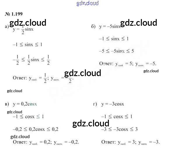 Ответ на задание 1.199 Учебник Алгебра за 10 (десятый) класс Арефьева, Пирютко 2019 онлайн и без номера телефона.