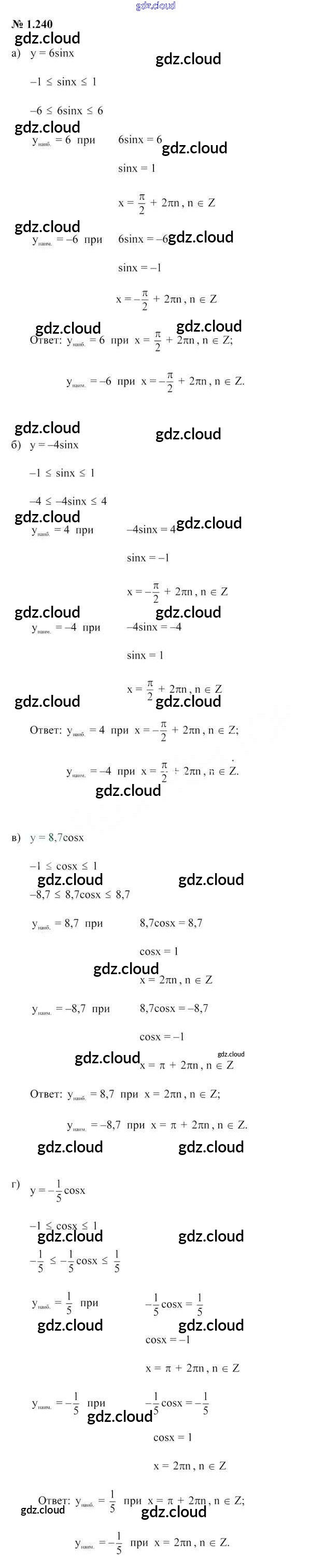 Ответ на задание 1.240 Учебник Алгебра за 10 (десятый) класс Арефьева, Пирютко 2019 онлайн и без номера телефона.