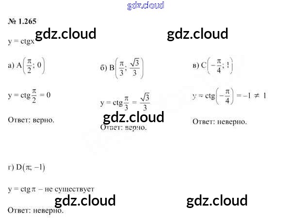 Ответ на задание 1.265 Учебник Алгебра за 10 (десятый) класс Арефьева, Пирютко 2019 онлайн и без номера телефона.