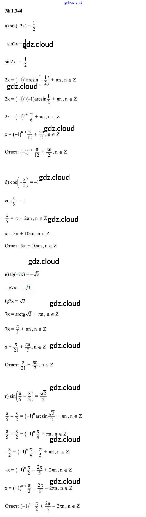 Ответ на задание 1.344 Учебник Алгебра за 10 (десятый) класс Арефьева, Пирютко 2019 онлайн и без номера телефона.