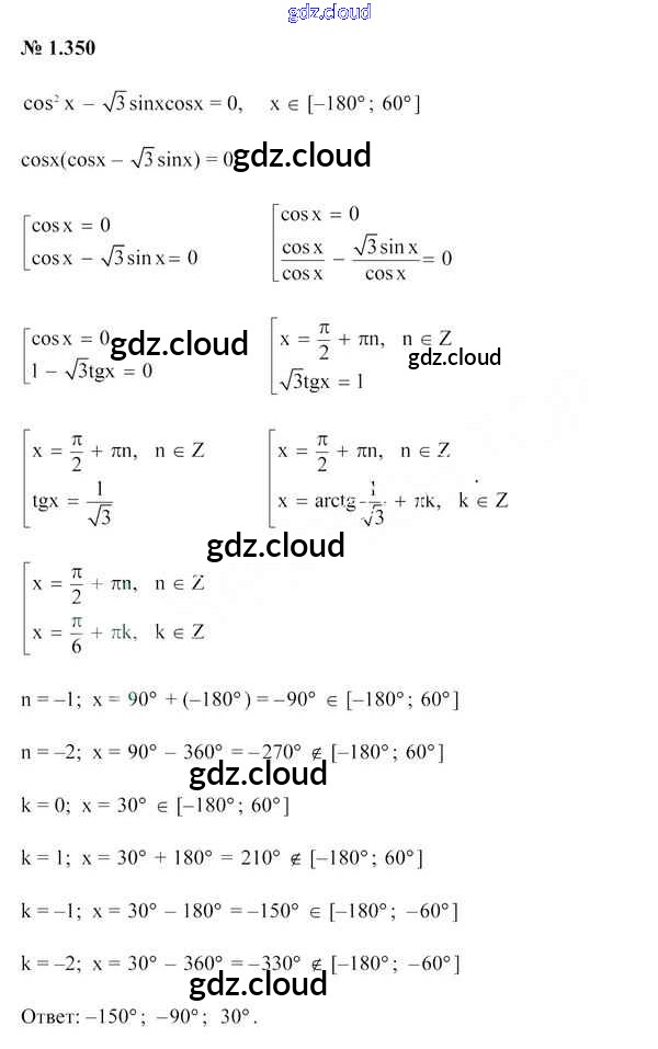 Ответ на задание 1.350 Учебник Алгебра за 10 (десятый) класс Арефьева, Пирютко 2019 онлайн и без номера телефона.