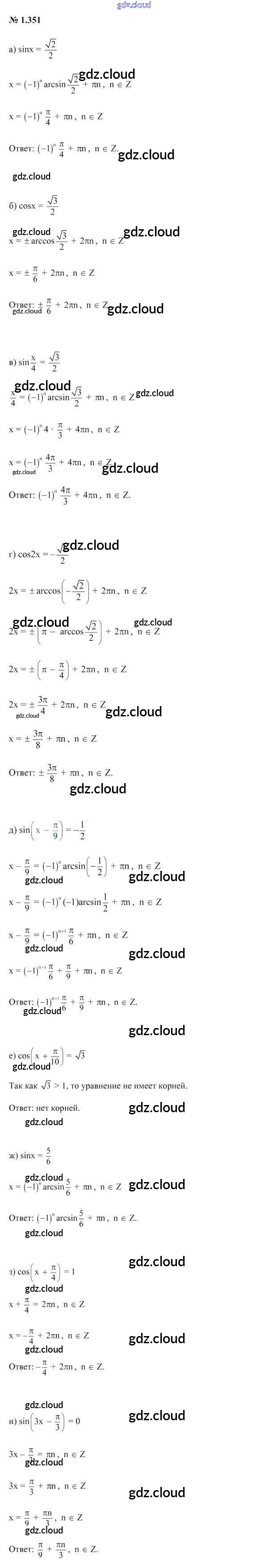 Ответ на задание 1.351 Учебник Алгебра за 10 (десятый) класс Арефьева, Пирютко 2019 онлайн и без номера телефона.