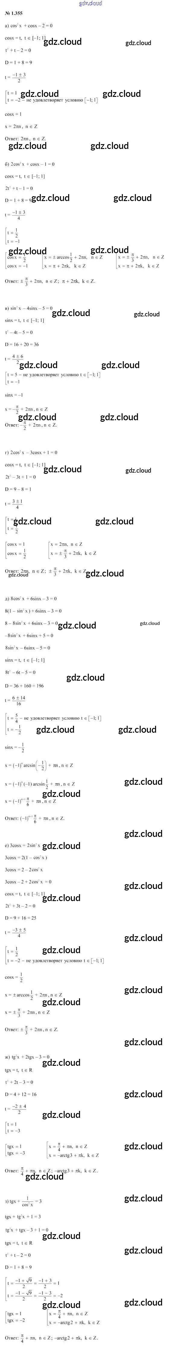 Ответ на задание 1.355 Учебник Алгебра за 10 (десятый) класс Арефьева, Пирютко 2019 онлайн и без номера телефона.