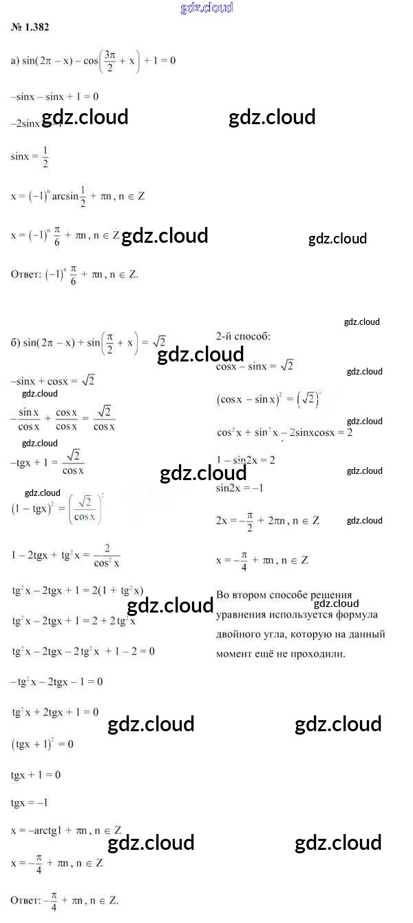 Ответ на задание 1.382 Учебник Алгебра за 10 (десятый) класс Арефьева, Пирютко 2019 онлайн и без номера телефона.