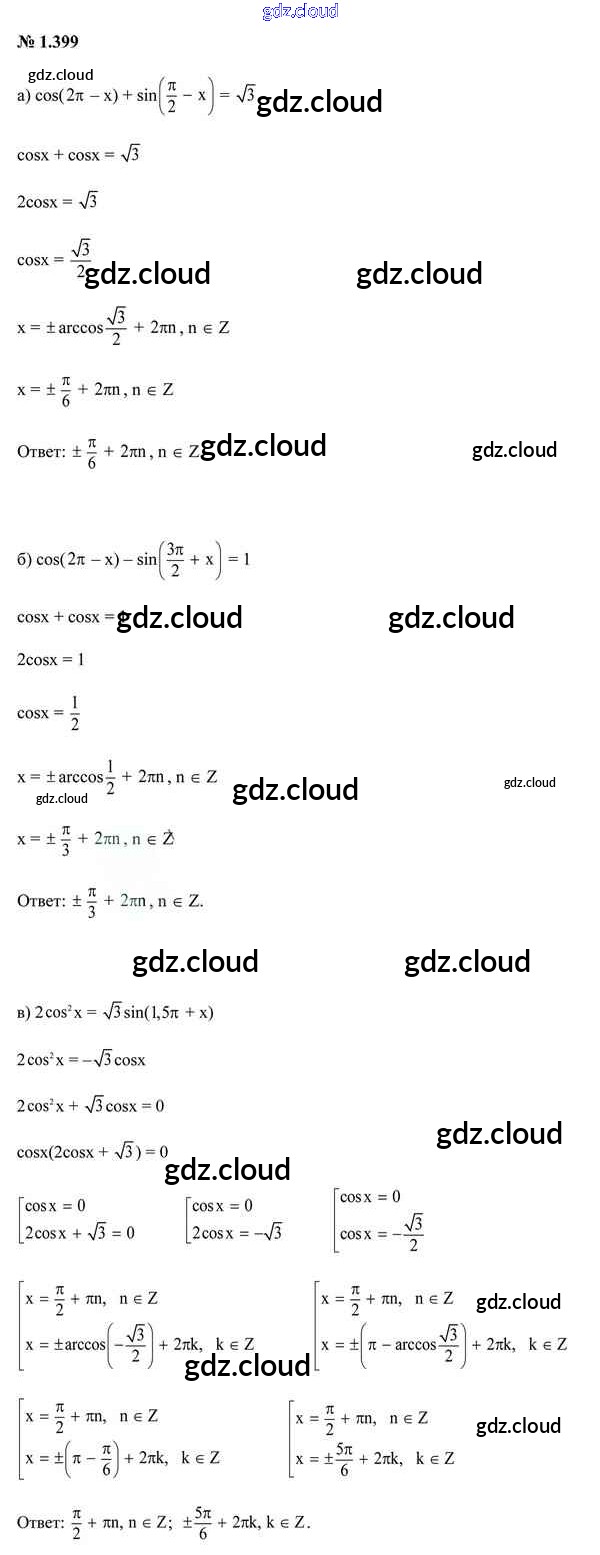 Ответ на задание 1.399 Учебник Алгебра за 10 (десятый) класс Арефьева, Пирютко 2019 онлайн и без номера телефона.