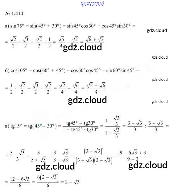 Ответ на задание 1.414 Учебник Алгебра за 10 (десятый) класс Арефьева, Пирютко 2019 онлайн и без номера телефона.