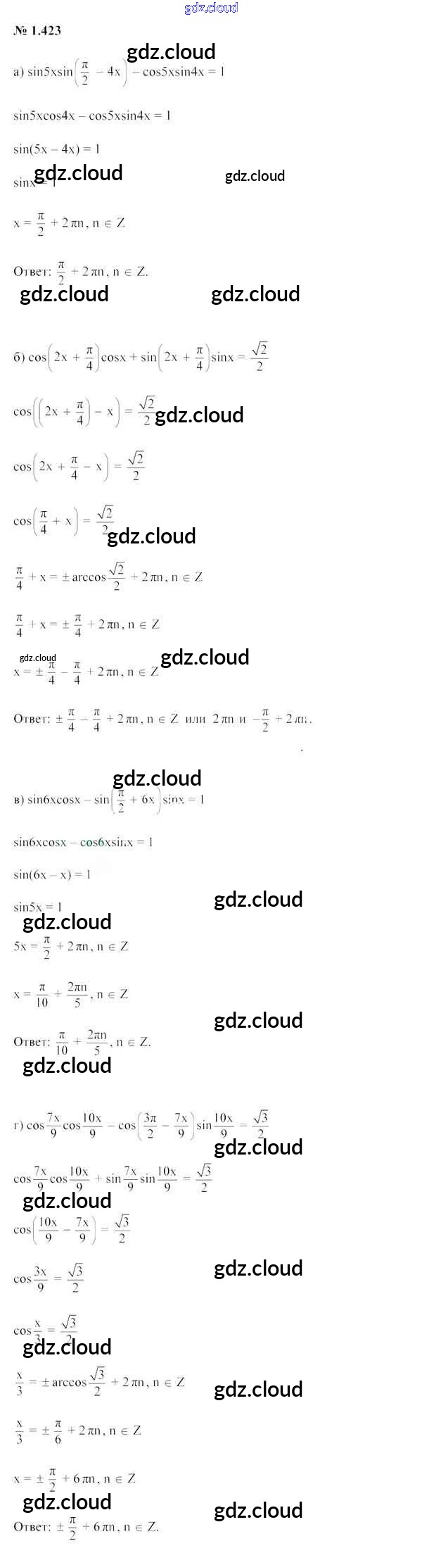 Ответ на задание 1.423 Учебник Алгебра за 10 (десятый) класс Арефьева, Пирютко 2019 онлайн и без номера телефона.