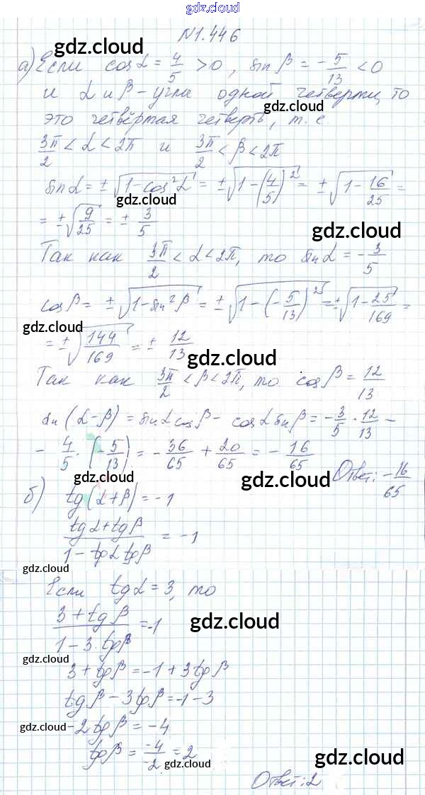 Ответ на задание 1.446 Учебник Алгебра за 10 (десятый) класс Арефьева, Пирютко 2019 онлайн и без номера телефона.