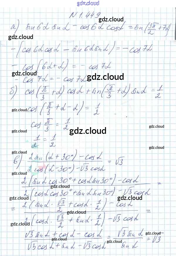 Ответ на задание 1.449 Учебник Алгебра за 10 (десятый) класс Арефьева, Пирютко 2019 онлайн и без номера телефона.