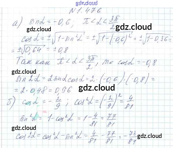 Ответ на задание 1.476 Учебник Алгебра за 10 (десятый) класс Арефьева, Пирютко 2019 онлайн и без номера телефона.