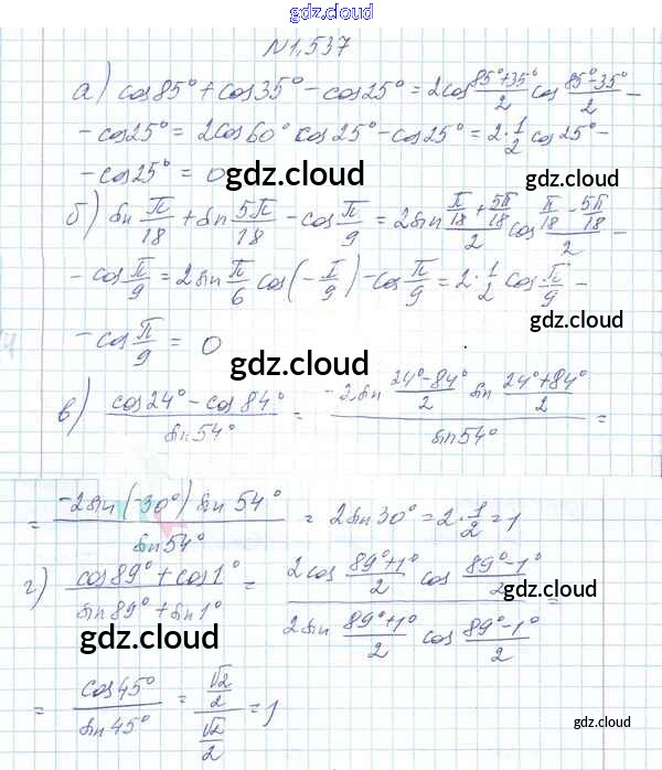 Ответ на задание 1.537 Учебник Алгебра за 10 (десятый) класс Арефьева, Пирютко 2019 онлайн и без номера телефона.