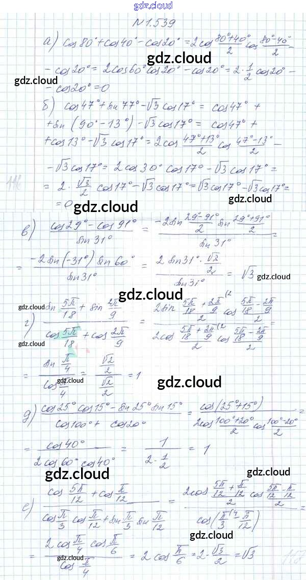 Ответ на задание 1.539 Учебник Алгебра за 10 (десятый) класс Арефьева, Пирютко 2019 онлайн и без номера телефона.
