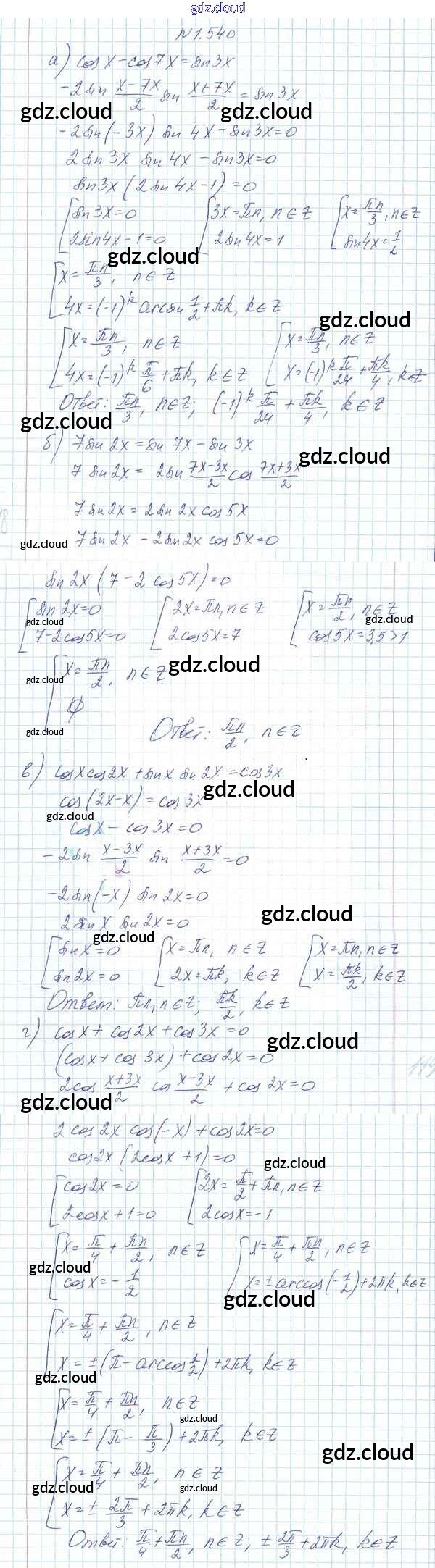 Ответ на задание 1.540 Учебник Алгебра за 10 (десятый) класс Арефьева, Пирютко 2019 онлайн и без номера телефона.