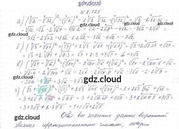 Ответ на задание 2.125 Учебник Алгебра за 10 (десятый) класс Арефьева, Пирютко 2019 онлайн и без номера телефона.