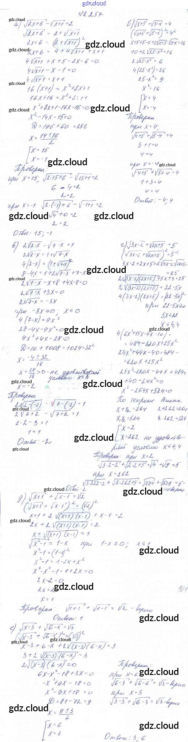 Ответ на задание 2.257 Учебник Алгебра за 10 (десятый) класс Арефьева, Пирютко 2019 онлайн и без номера телефона.