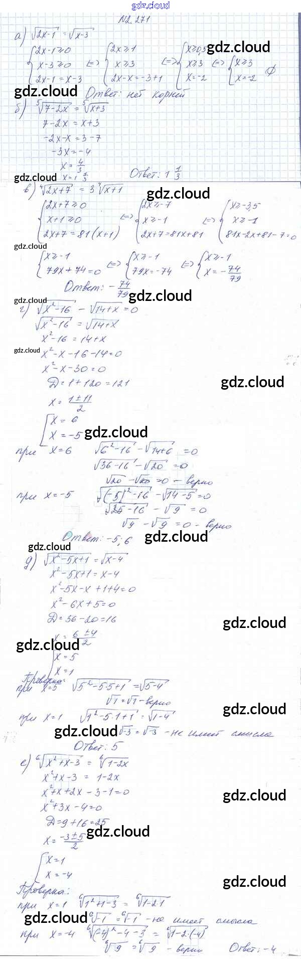 Ответ на задание 2.271 Учебник Алгебра за 10 (десятый) класс Арефьева, Пирютко 2019 онлайн и без номера телефона.