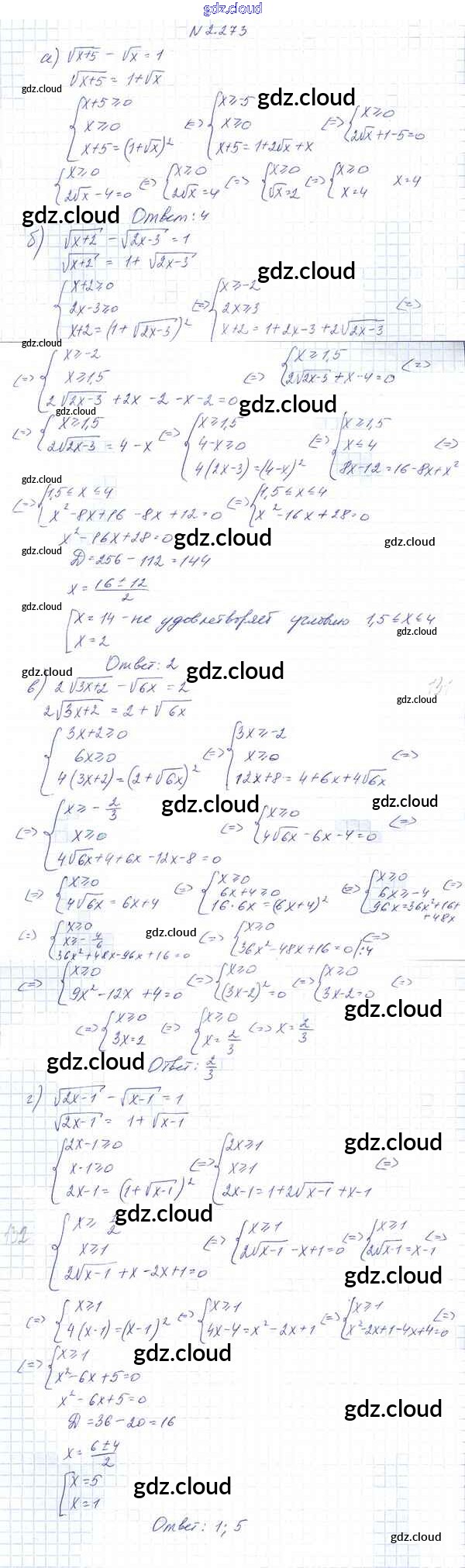 Ответ на задание 2.273 Учебник Алгебра за 10 (десятый) класс Арефьева, Пирютко 2019 онлайн и без номера телефона.