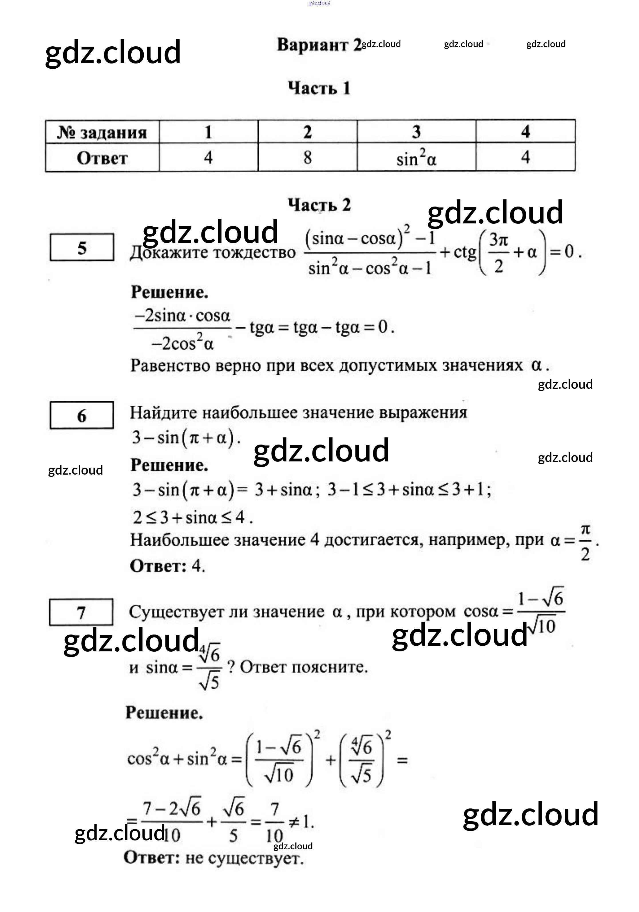 Ответ на задание 2 Контрольные работы Алгебра за 10 (десятый) класс Дудницын, Семёнов 2013 онлайн и без номера телефона.